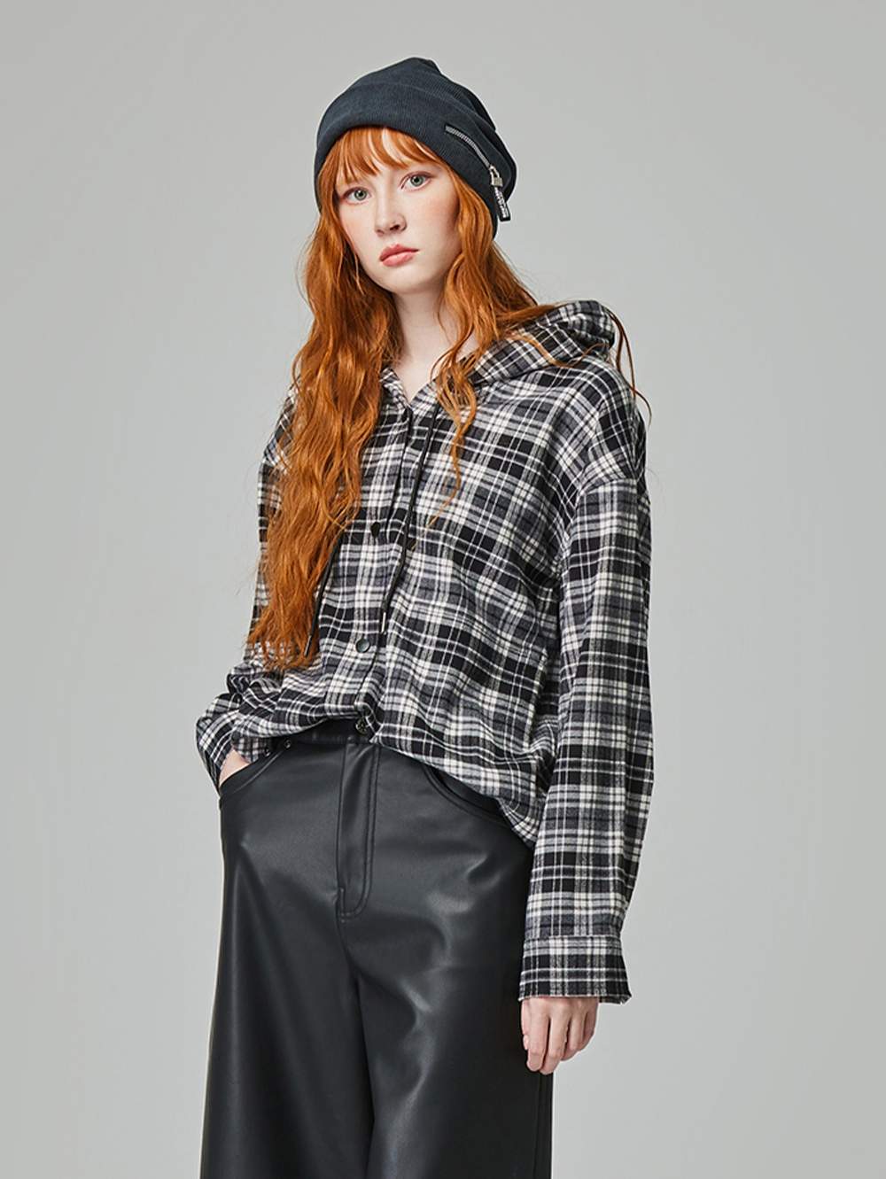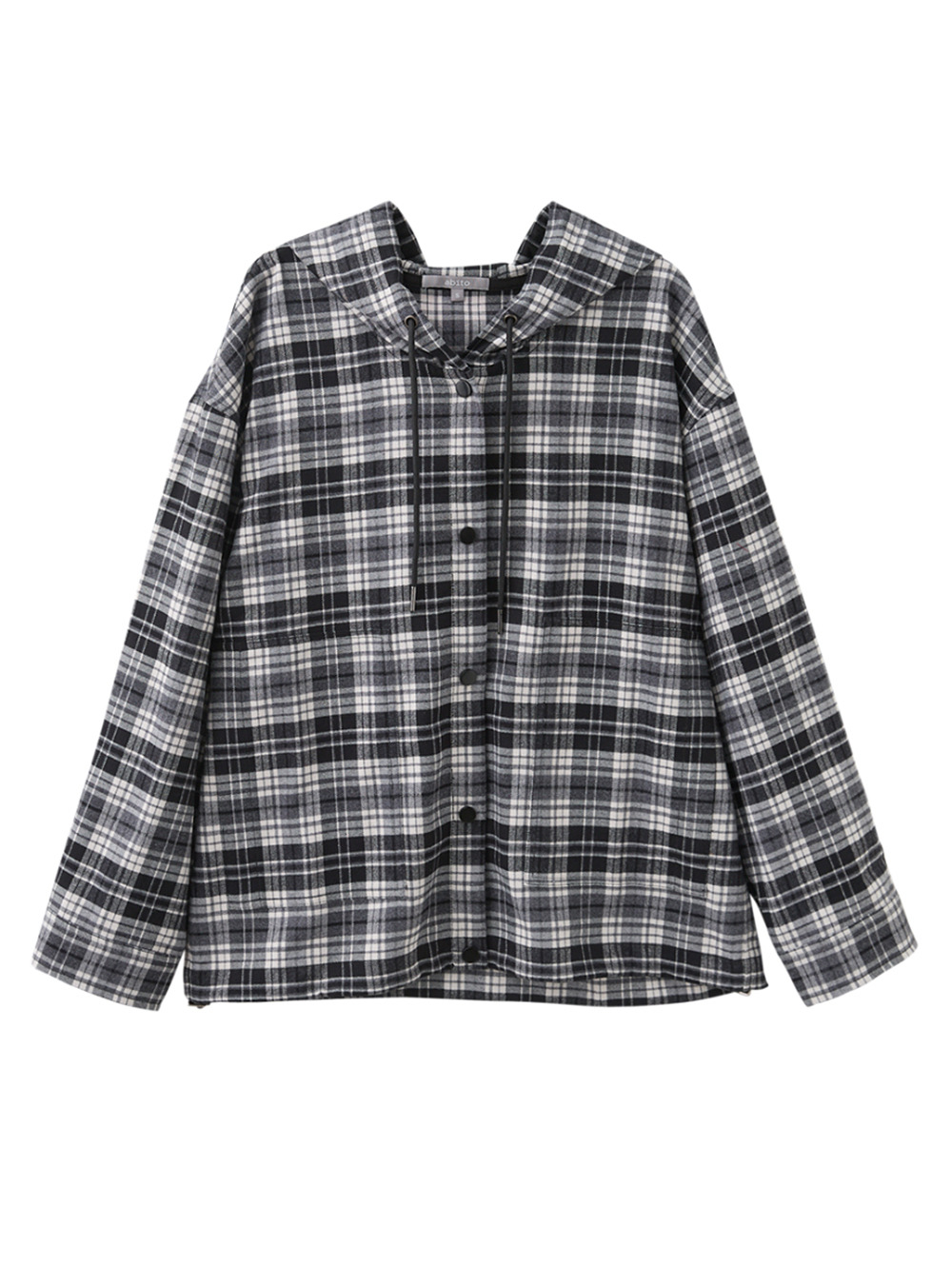 *下襬抽繩調節環可自由縮放 *休閒格紋圖案 *寬鬆連帽版型,日常百搭 *側邊口袋設計