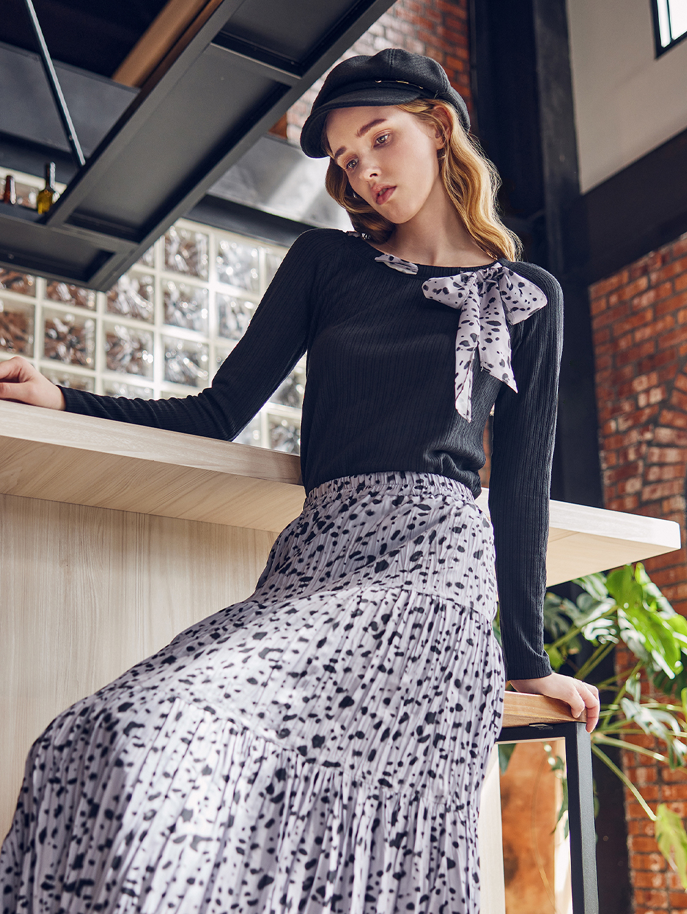 abito豹紋緞帶上衣