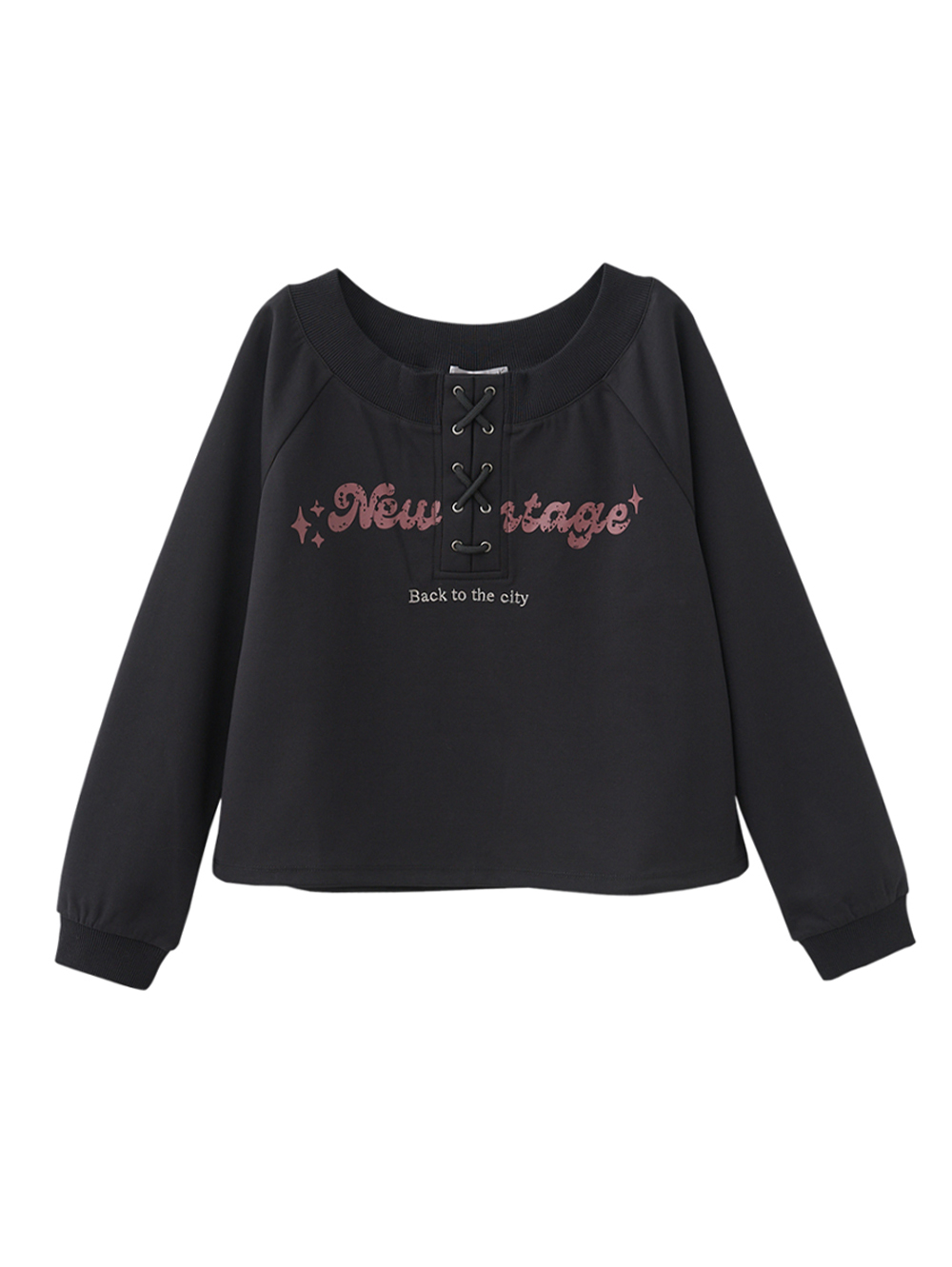*羅紋領口加強彈性與耐用 *復古印字設計 *領口綁繩交叉設計 *拉客蘭袖版型,活動舒適