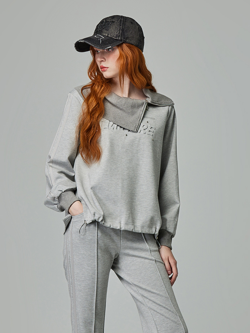 *翻領設計 *文字鋼印造型 *金屬銀飾點綴 *下襬抽繩調節釦