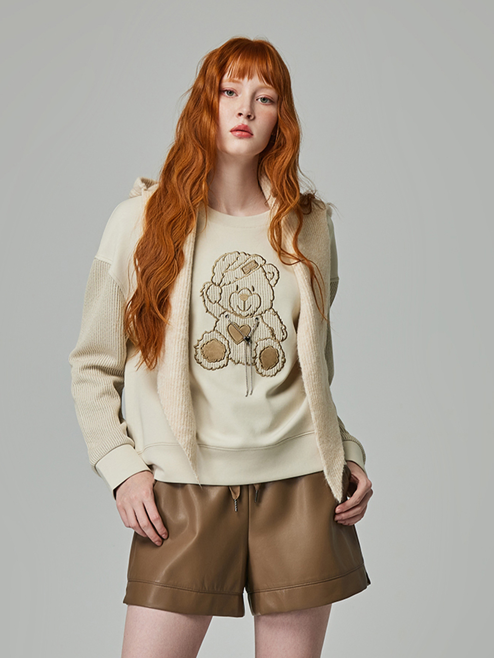 *可愛小熊刺繡設計 *愛心金屬裝飾鍊造型 **羅紋領口加強彈性與耐用 *舒適棉質面料