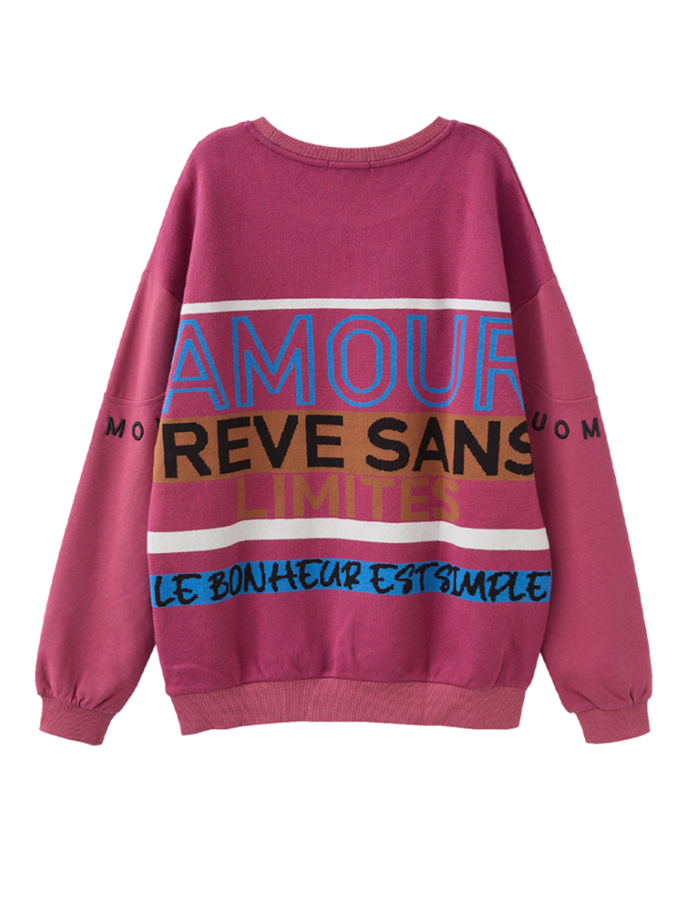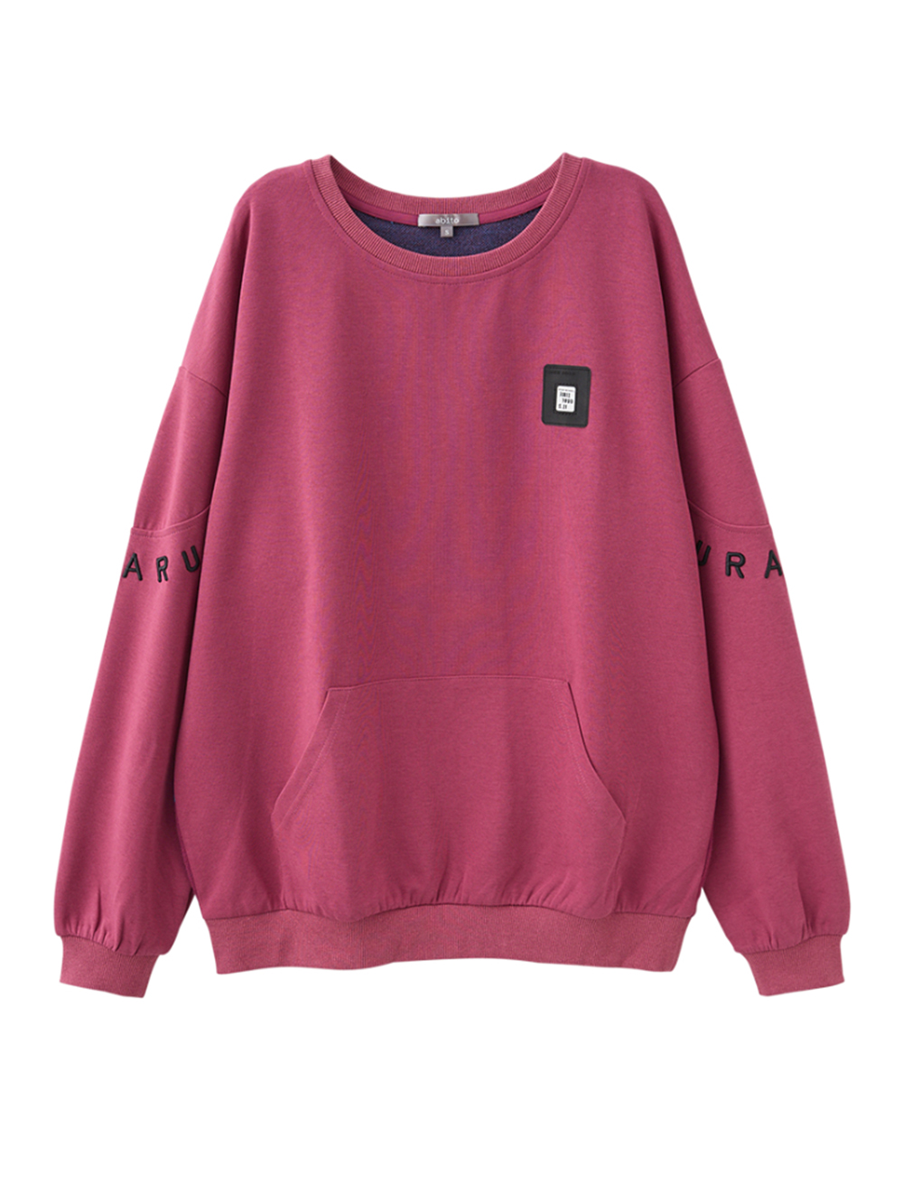 *圓領羅紋加強領口彈性與耐用 *後片拼接針織面料 *袖口刺繡文字造型 *棉質布料舒適上衣
