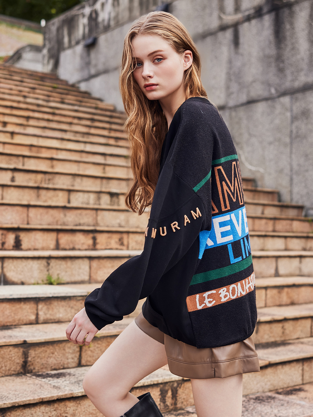 abito拼接針織文字大學T