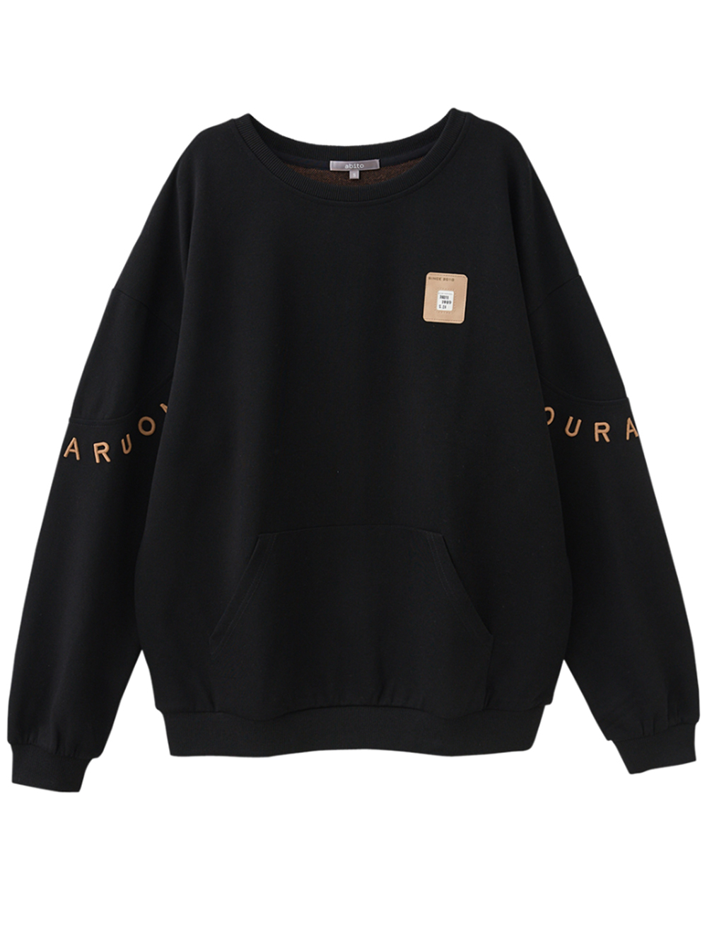 *圓領羅紋加強領口彈性與耐用 *後片拼接針織面料 *袖口刺繡文字造型 *棉質布料舒適上衣