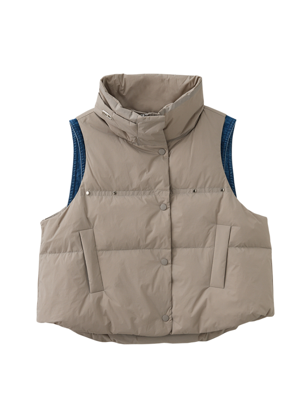 *袖口牛仔布料拼接設計 *蓬鬆立領設計 *鬆鬆短版版型,修飾線條 *保暖羽絨材質,舒適溫暖