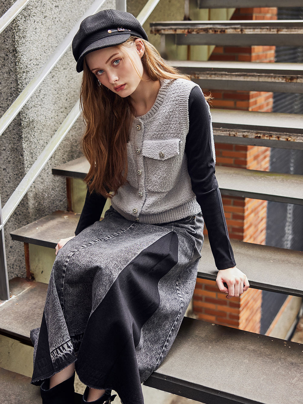 *特殊緹花面料 *羅紋領口加強彈性與耐用 *雙口袋造型 *適合秋冬搭配穿搭