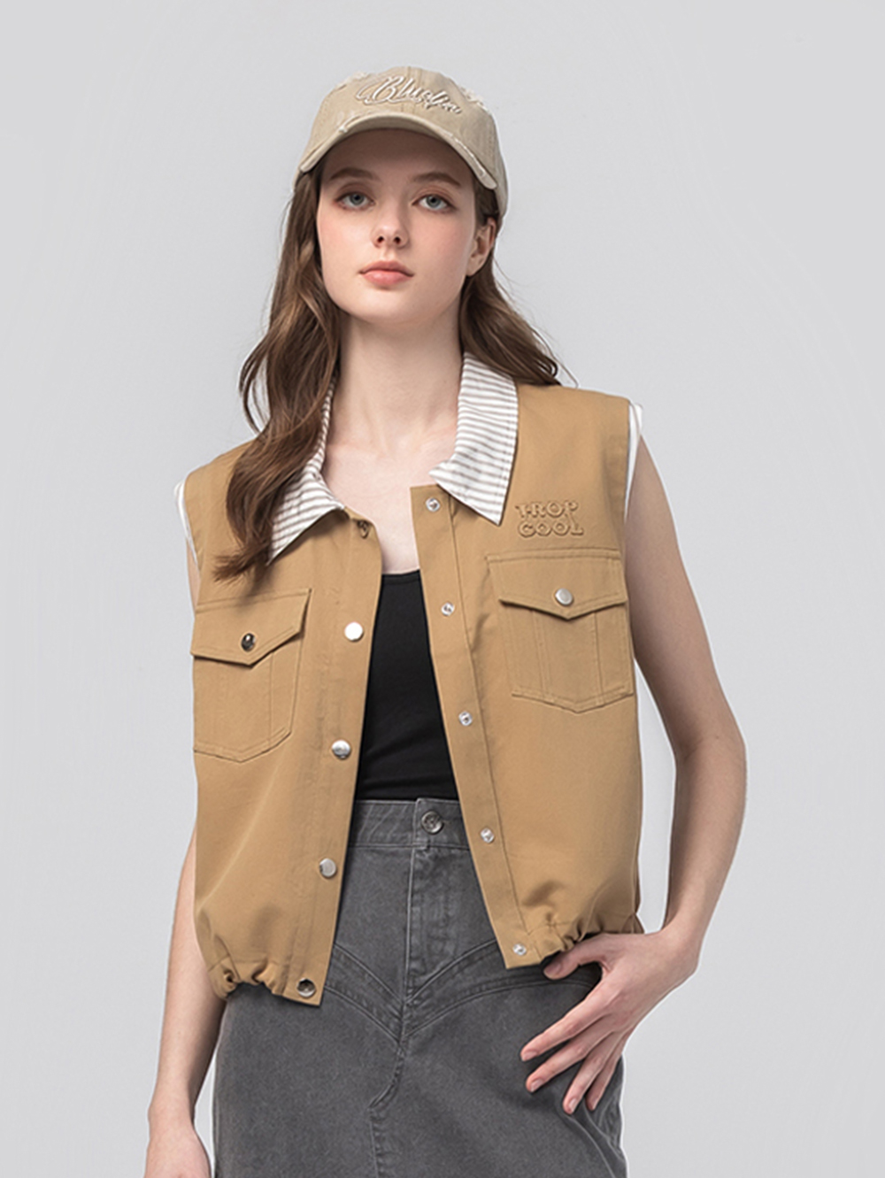 *雙口袋金屬壓釦及精緻刺繡細節 *條紋襯衫面料拼接特色 *下襬抽繩調節環設計 *寬鬆版型設計,適合單穿也可疊穿當外罩搭配