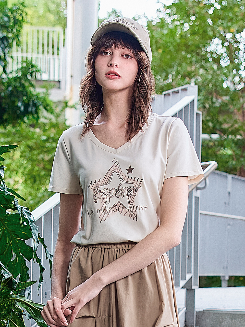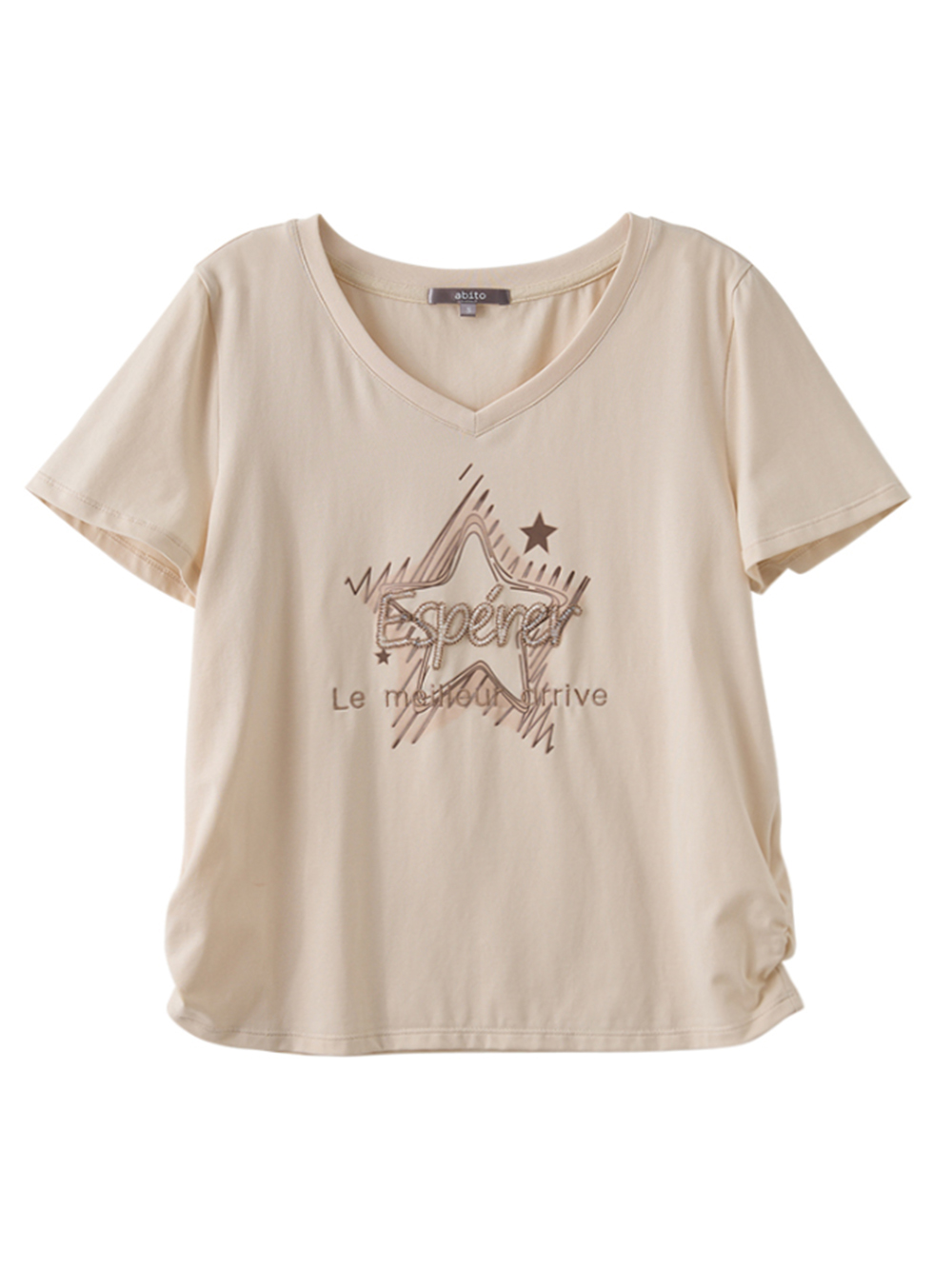 *星星圖騰造型 *立體珠珠刺繡細節 *兩側車縫鬆緊帶,修飾身形比例 *V領設計修飾臉型與頸部線條
