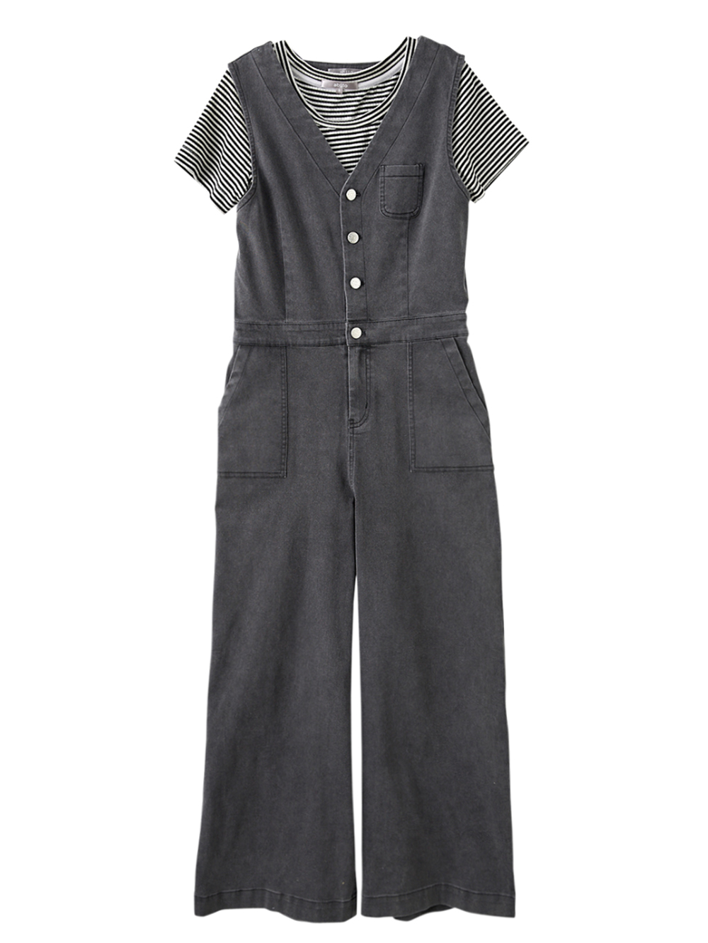 *內附條紋上衣,可自由穿搭 *V領設計修飾臉型與頸部線條 *版型修飾身形,拉長比例 *透氣棉質柔軟面料