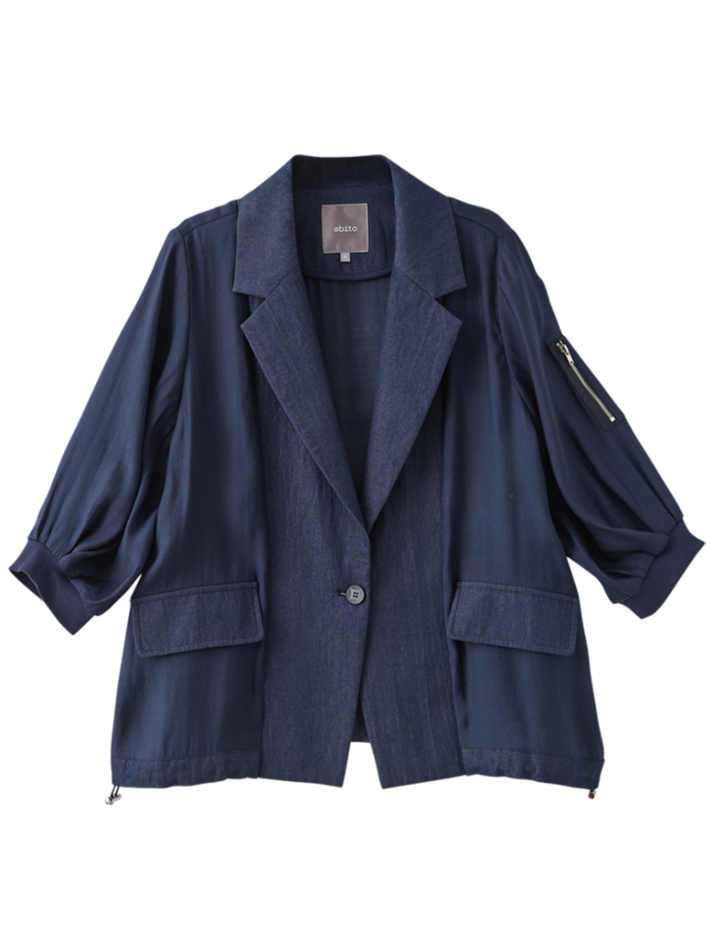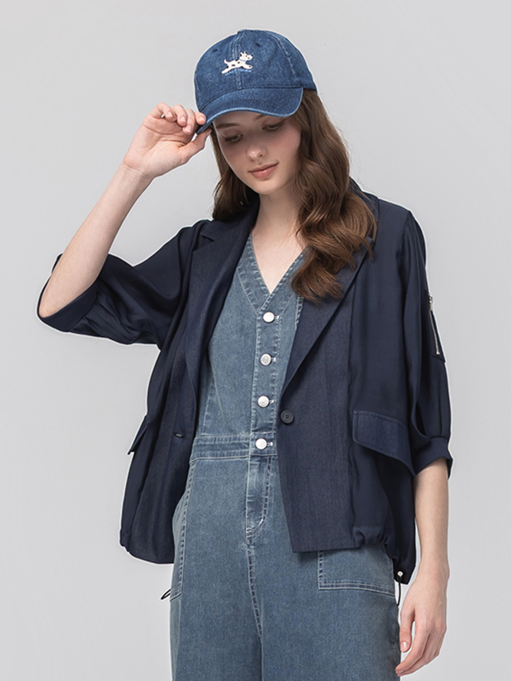 *浪漫澎袖設計版型 *附蓋大口袋造型 *異材質拼接特色 *短版收腰版型,修飾身型比例