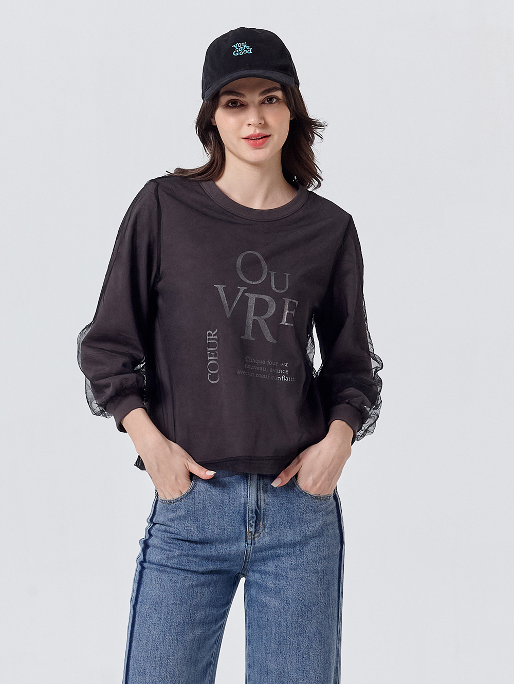 DITA層次感拼接薄紗印花T-shirt