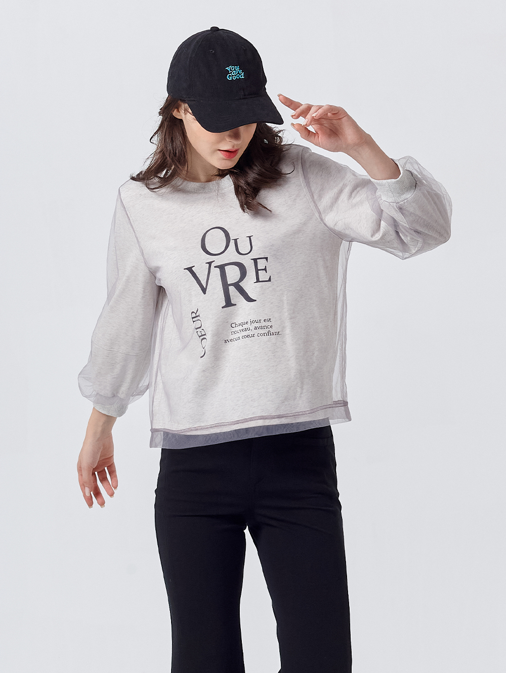 DITA層次感拼接薄紗印花T-shirt