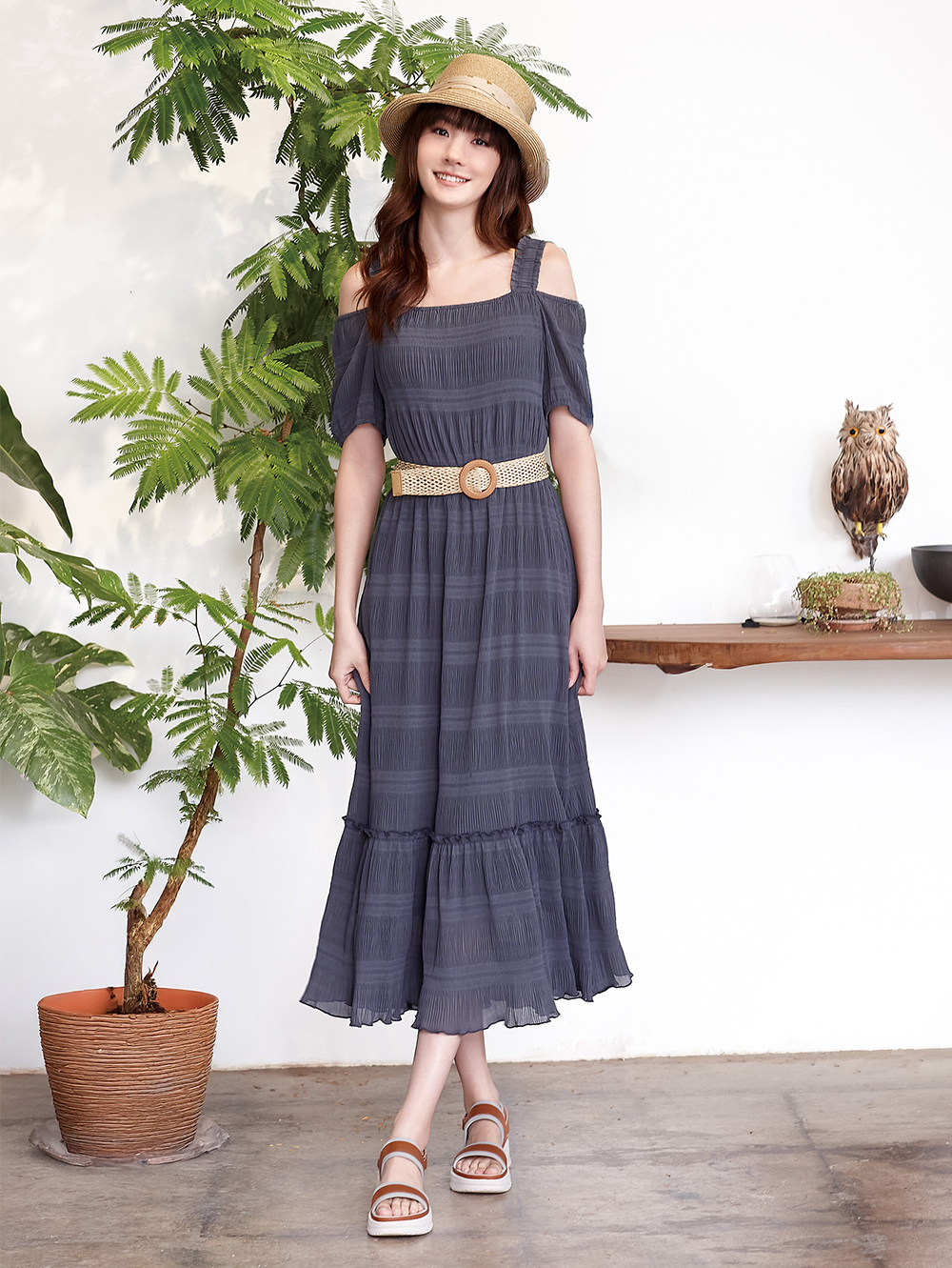 甜美修身版型 荷葉邊點綴增添細節 輕柔網紗面料