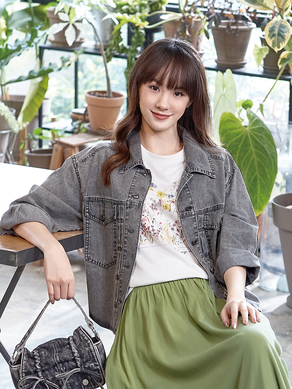 基礎百搭身型 率性牛仔排釦設計 舒適柔軟布底