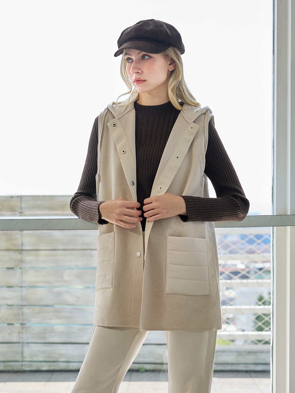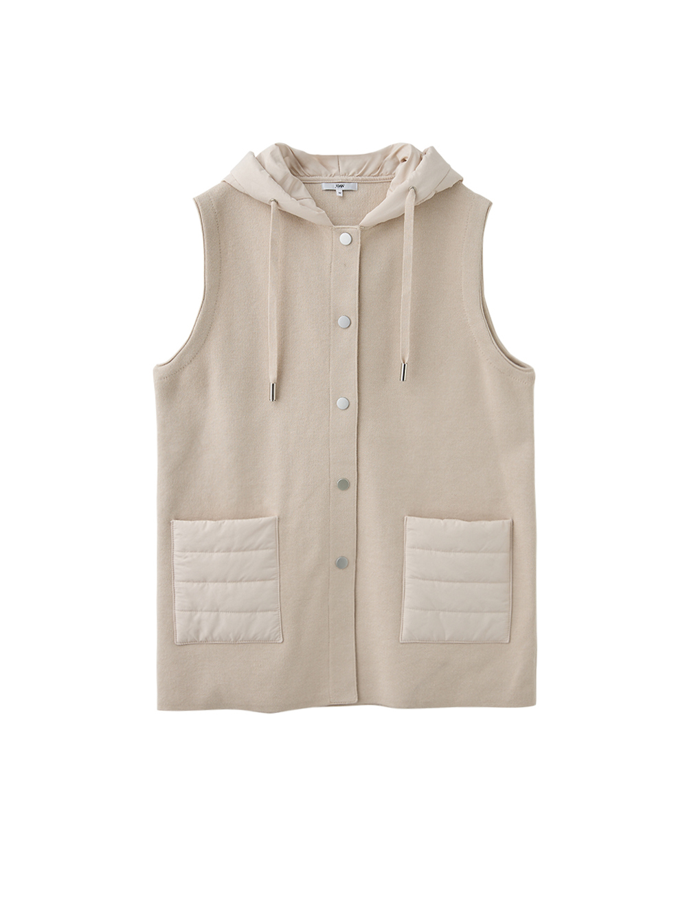 修身效果極佳的中長版型, 口袋與帽子壓紋鋪棉拼接, 增加輕鬆休閒的氛圍。