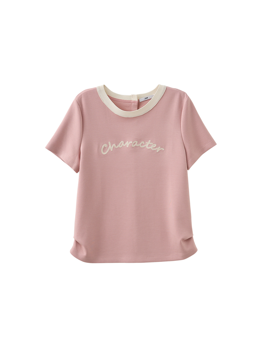 JOAN異材質撞色領口標語電繡T恤