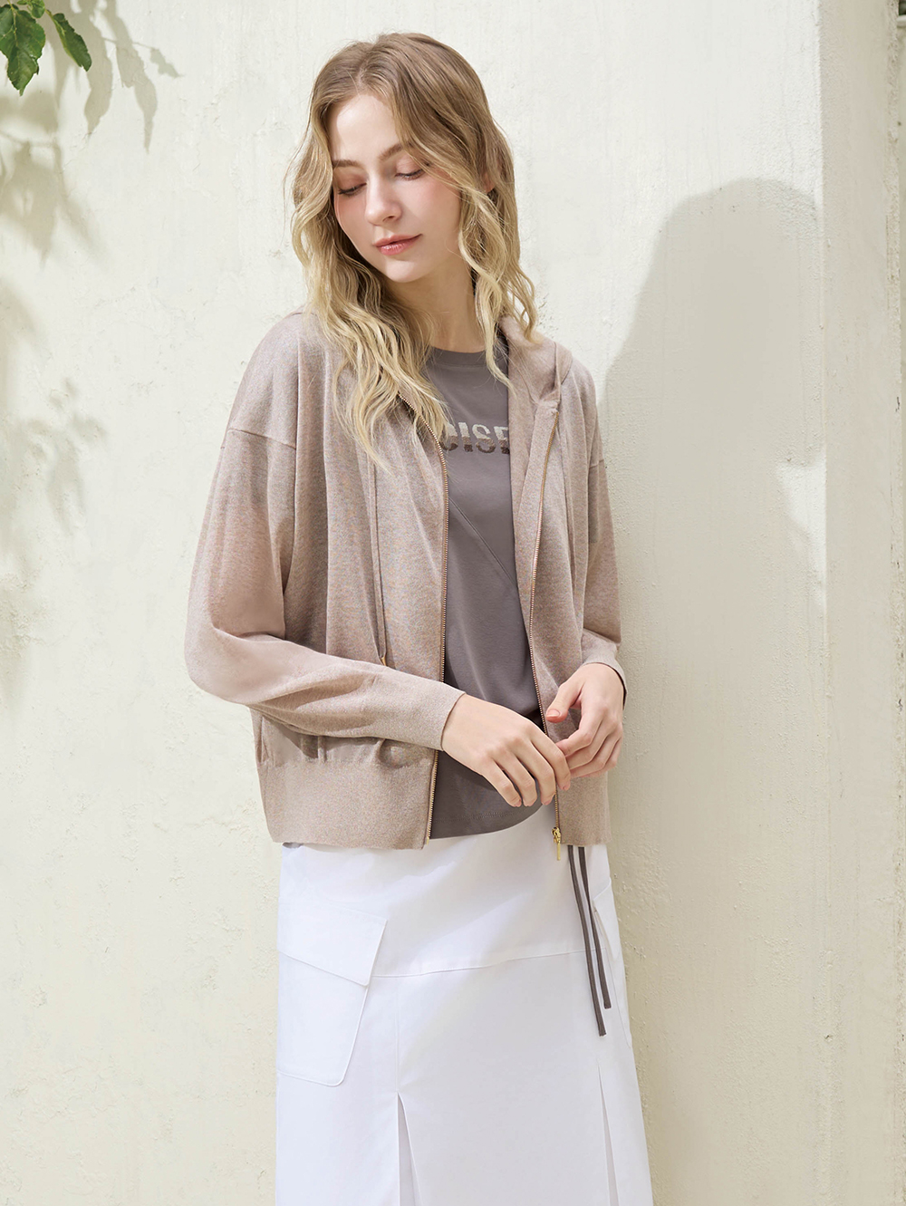 以柔軟舒適的棉質布料為基底, 搭配對稱剪接線條與可調式抽繩設計, 自然收出腰線比利輕鬆修飾身形。