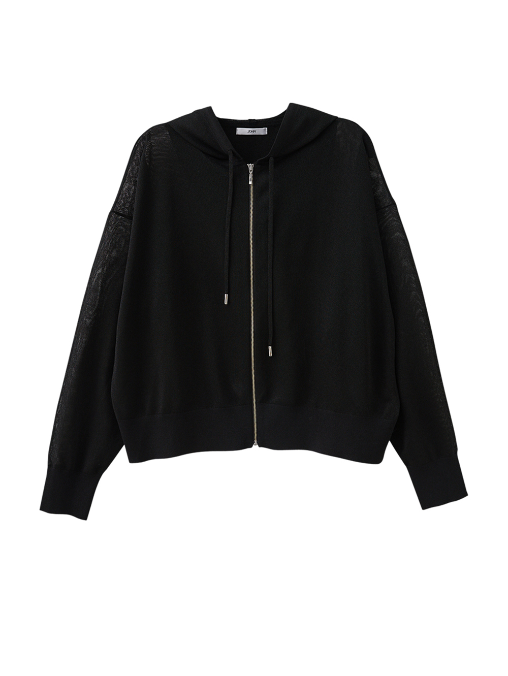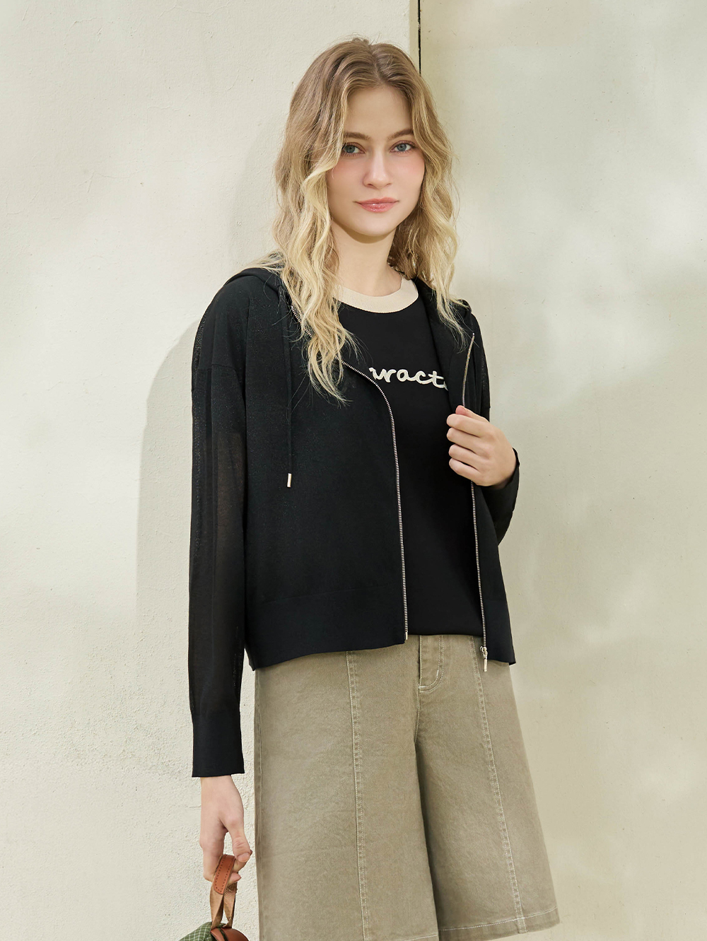JOAN知性光澤薄透顯瘦針織連帽外套