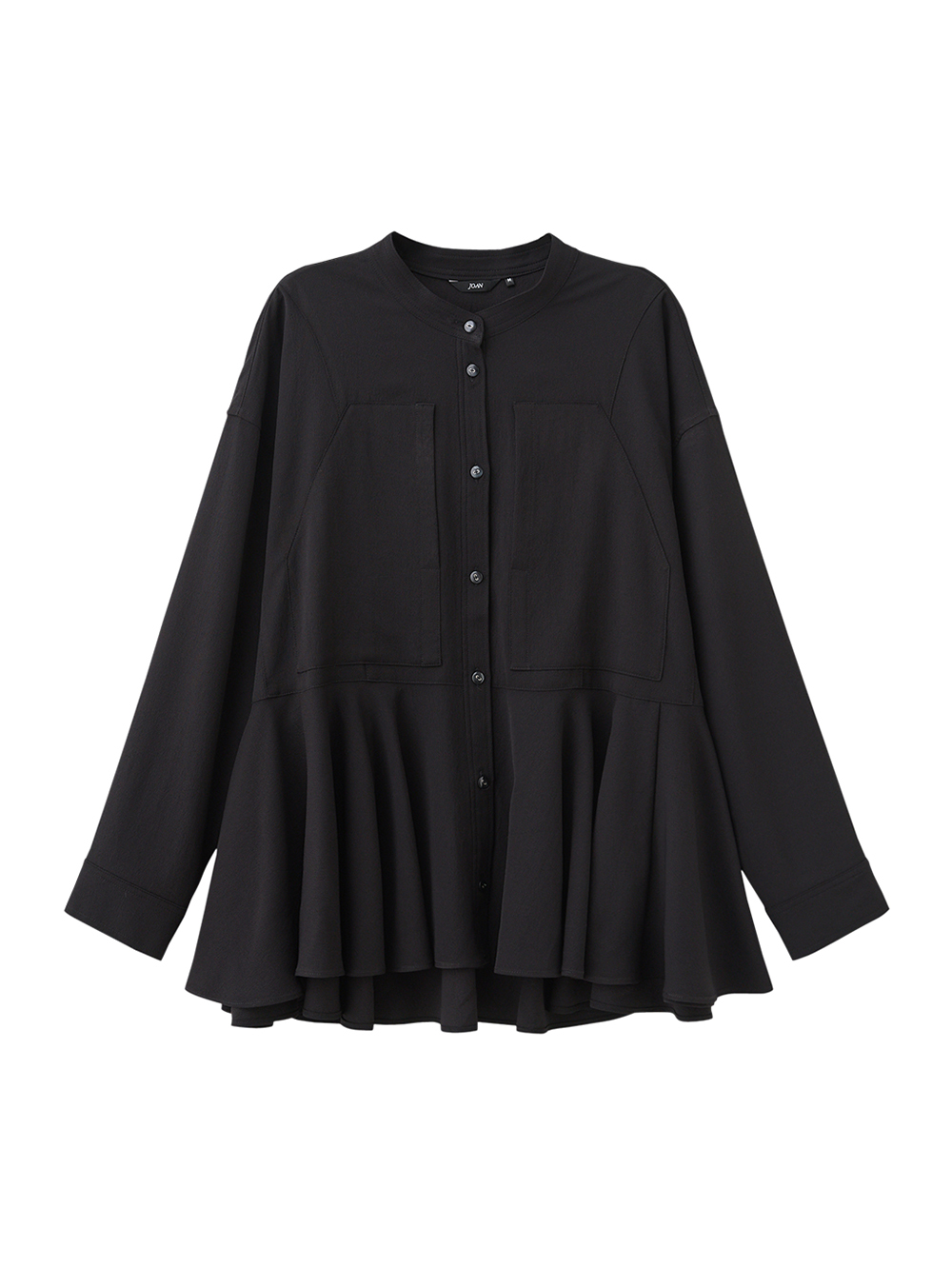 簡約中展現優雅細節, 俐落簡約上身搭配飄逸荷葉層次下擺, 打造優雅隨興又具造型感穿搭。