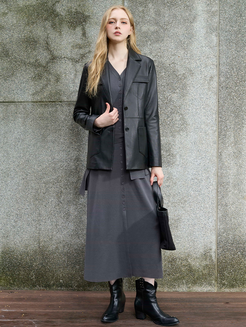 DENOVOV領針織排釦洋裝(附針織披肩) DENOVOV領針織排釦洋裝(附針織披肩) DENOVOV領針織排釦洋裝(附針織披肩)