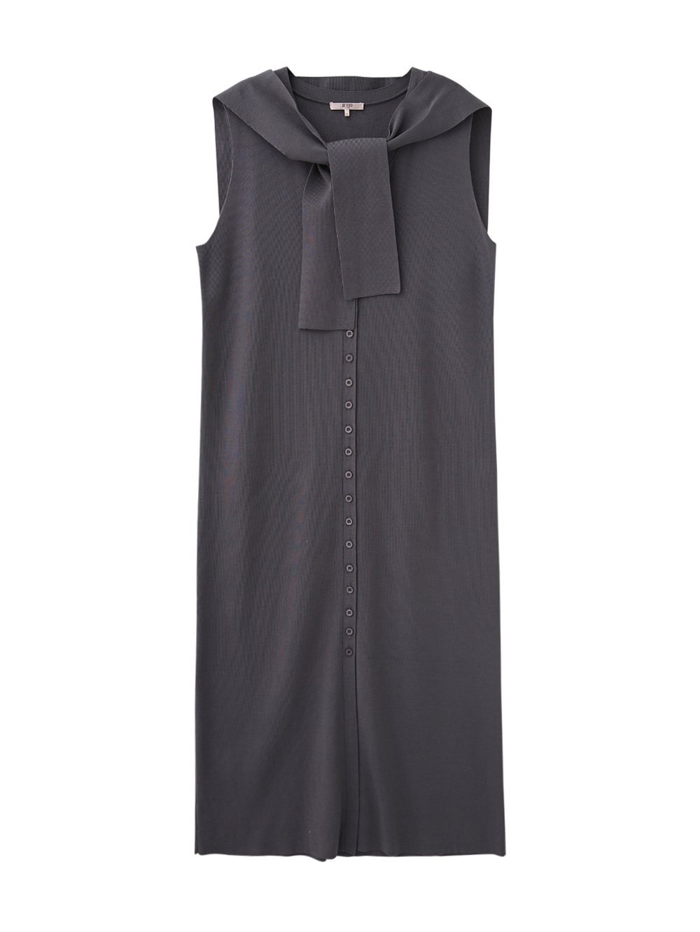 DENOVOV領針織排釦洋裝(附針織披肩)