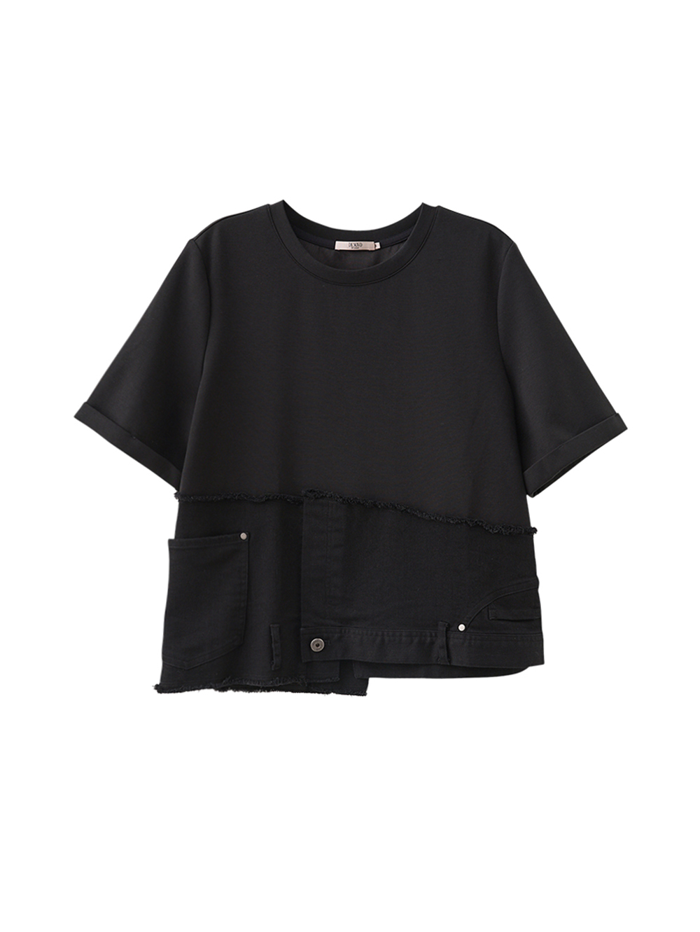 DENOVO設計感拼接牛仔空氣棉T恤