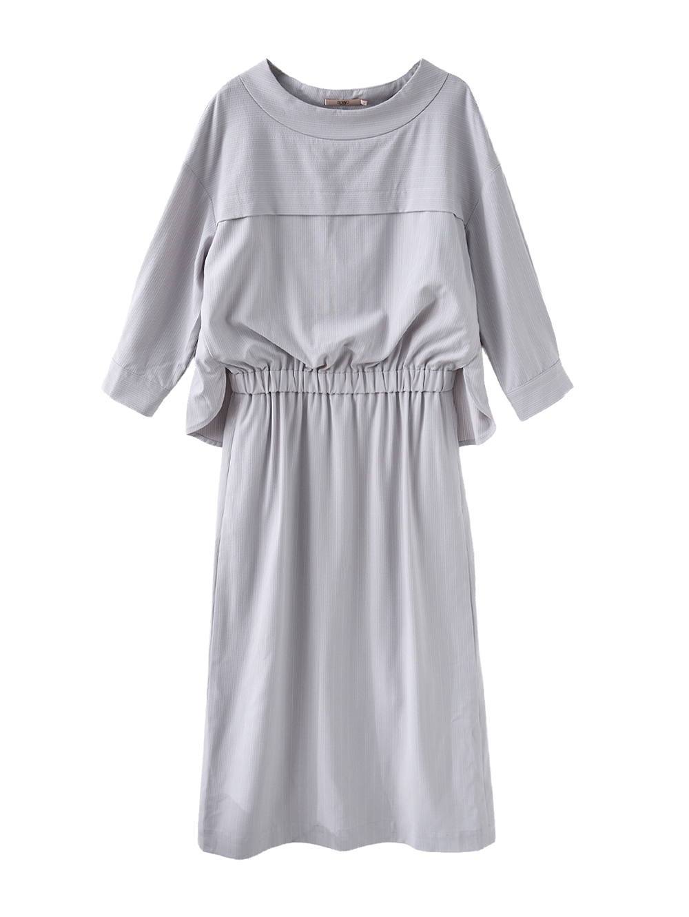 用低調層次, 穿出剛剛好的優雅。 上身寬鬆剪裁結合自然垂墜的腰間收摺, 修飾身形線條, 同時保留舒適活動度。 細緻組織布面在光線下呈現柔霧質感, 讓日常穿搭多一分安靜的美。