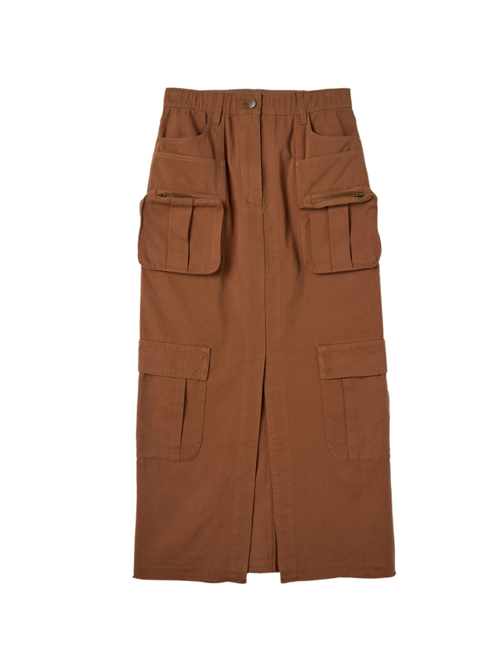 工裝風格多口袋設計,率性時髦,前中開岔,不僅增添穿著時的便利性與舒適性,更有視覺延伸腿長的效果。