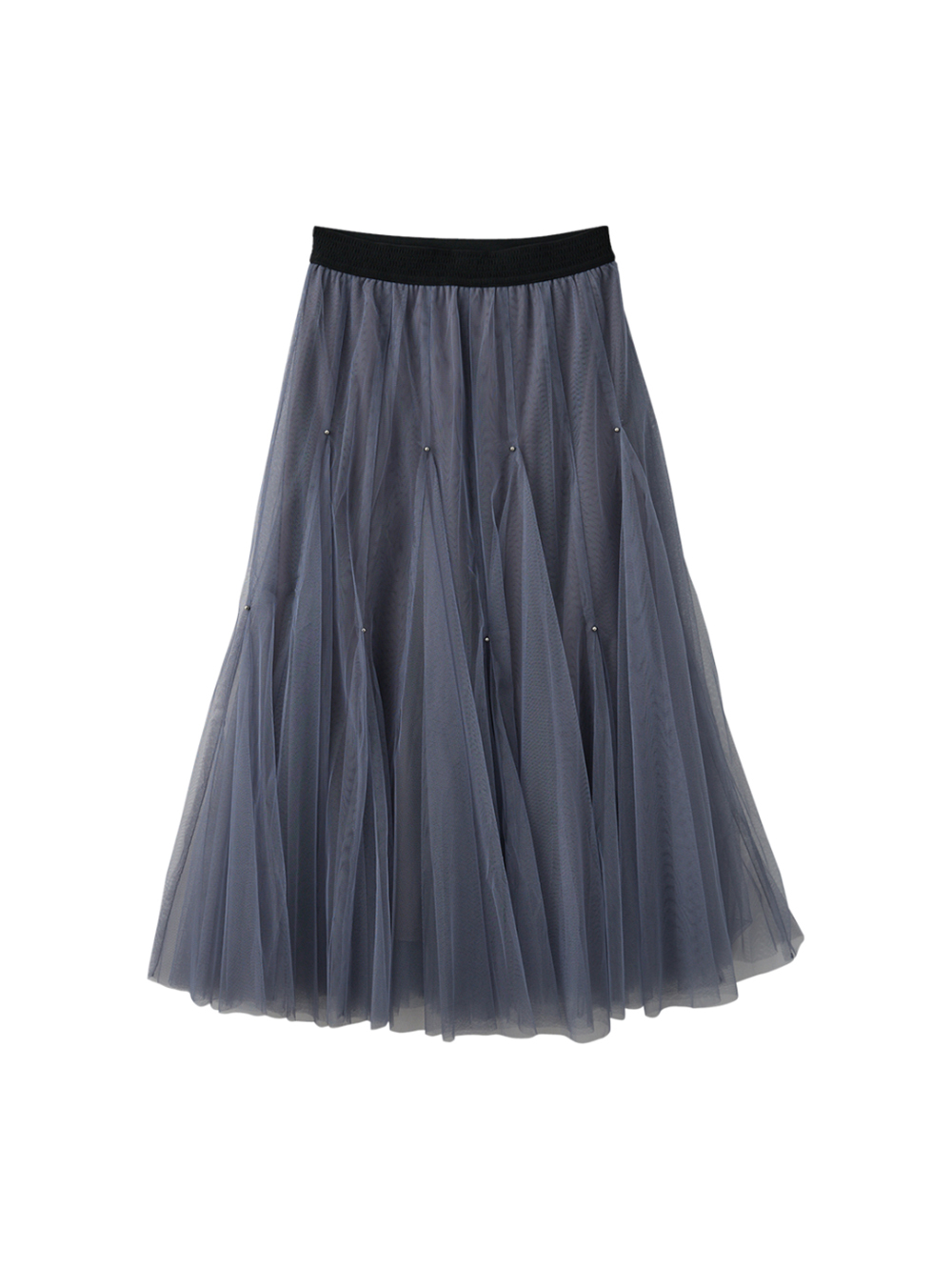 *鬆緊織帶腰頭 *金屬釘珠 *細緻網紗材質 *裙裡設計安全感十足