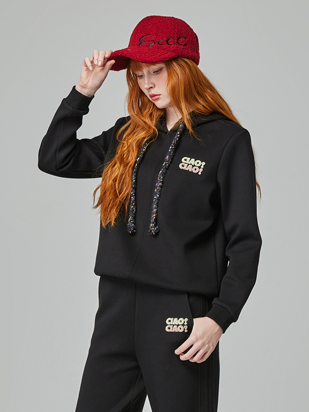 *特殊混色造型面料 *立體繡圖增添細節 *混色抽繩呼應特殊面料 *柔軟面料