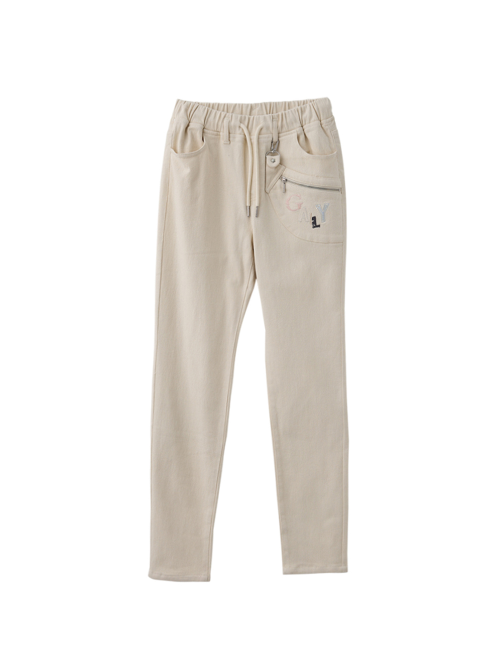 *面料內刷毛,保暖舒適 *貼身直筒版型,修飾腿部比例 *字母刺繡拉鍊細節特色 *鬆緊腰頭,穿脫方便舒適