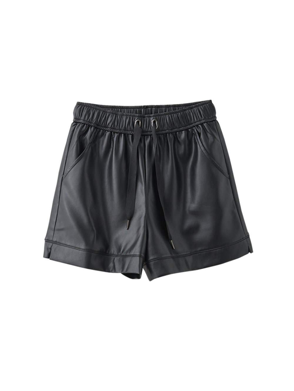 *鬆緊腰頭設計,方便穿脫 *柔軟親膚皮革面料 *適合秋季穿搭 *下襬側邊微開衩