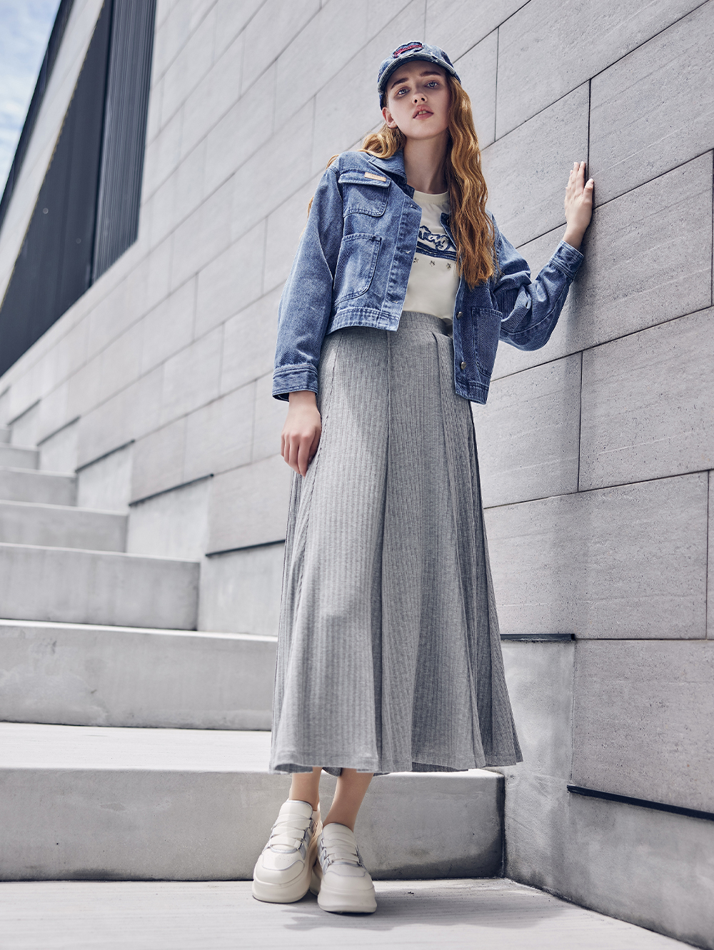 *特殊剪裁車縫設計 *柔軟彈性坑條面料 *個性休閒風格穿搭 *垂墜感裙擺修飾線條