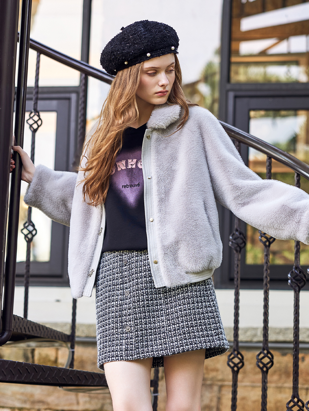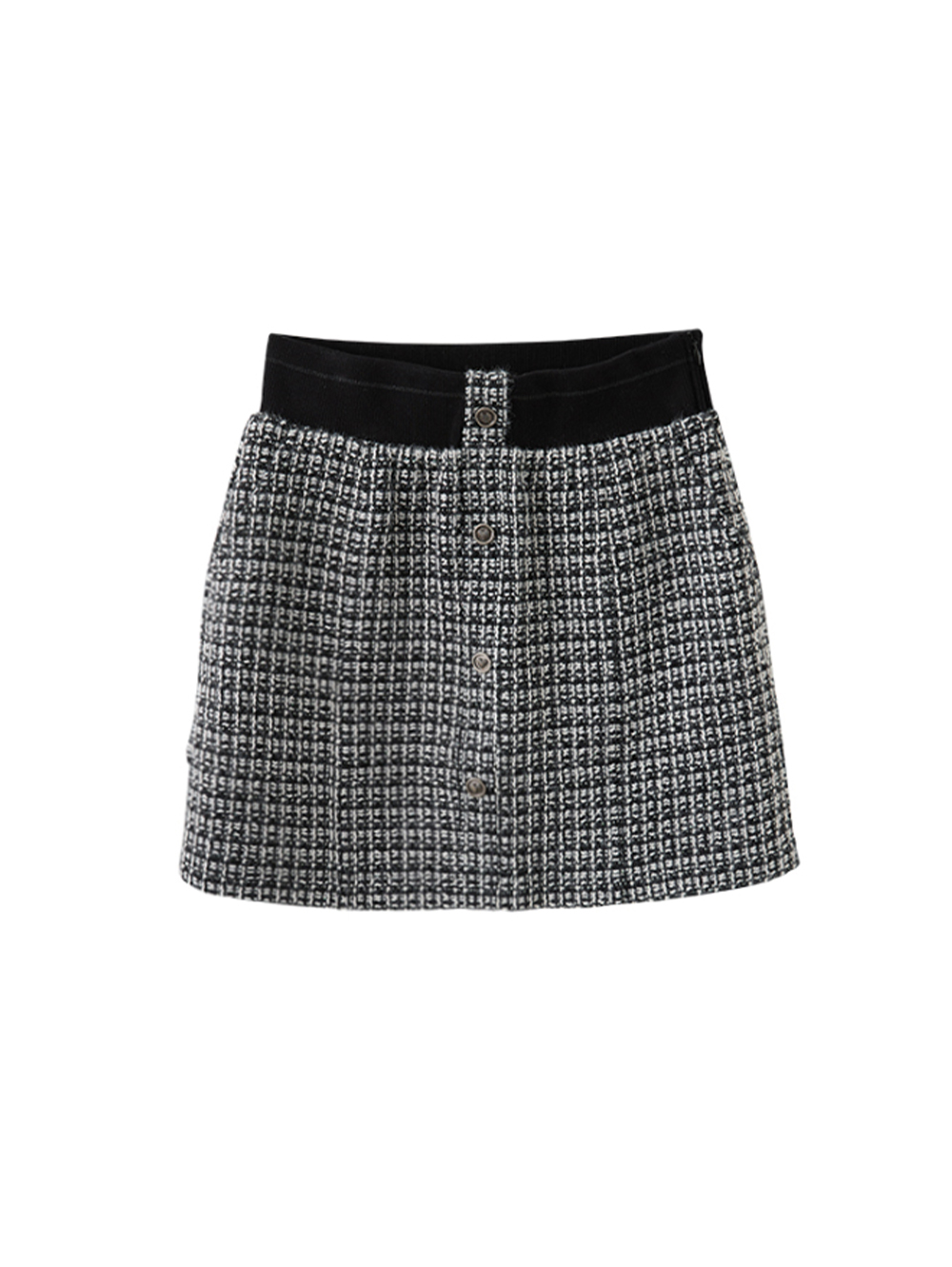 *小香格紋面料 *金屬愛心圓釦 *側邊隱形拉鍊設計 *安全褲裡設計