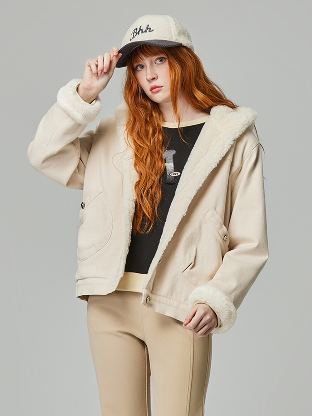*外層牛仔面料設計 *絨毛內裡柔軟保暖親膚 *前貼口袋造型 *寬鬆版型