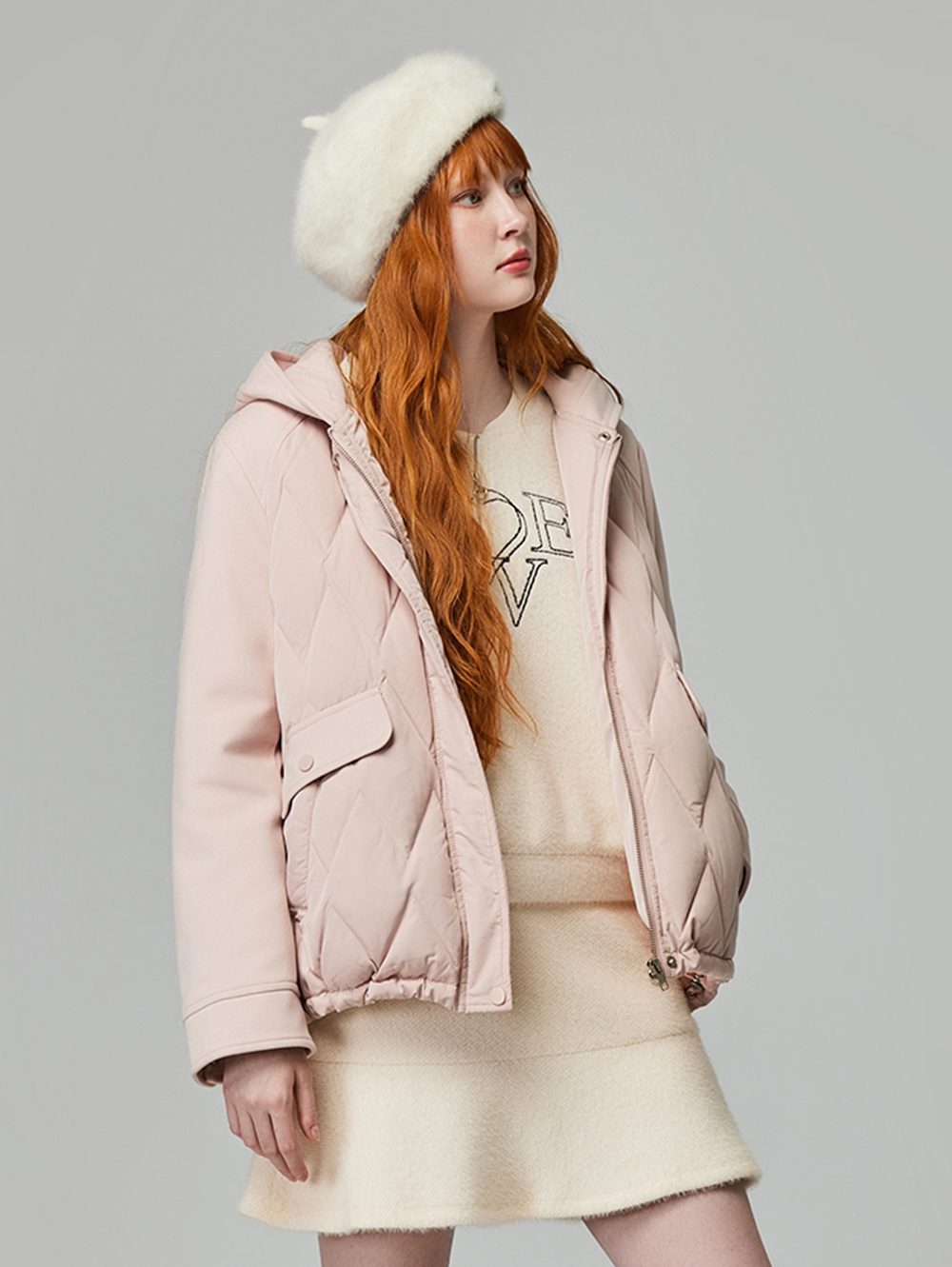 *立體绗縫菱格紋路 *下擺抽繩設計可自由調節 *面料舒適保暖 *秋冬日常百搭款