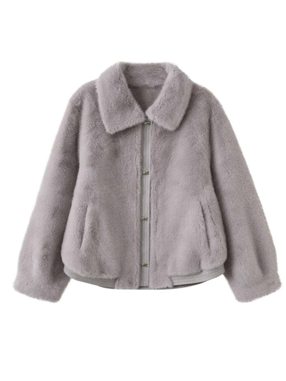 *襯衫領版型寬鬆舒適 *特殊造型壓釦細節 *絨毛保暖面料 *秋冬時髦百搭款