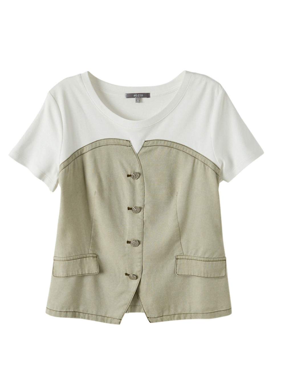 *懶人穿搭必備假兩件層次設計 *搭配精緻金屬質感釦子點綴 *微修身版型,修飾身形線條 *柔軟舒適布料,不厚重