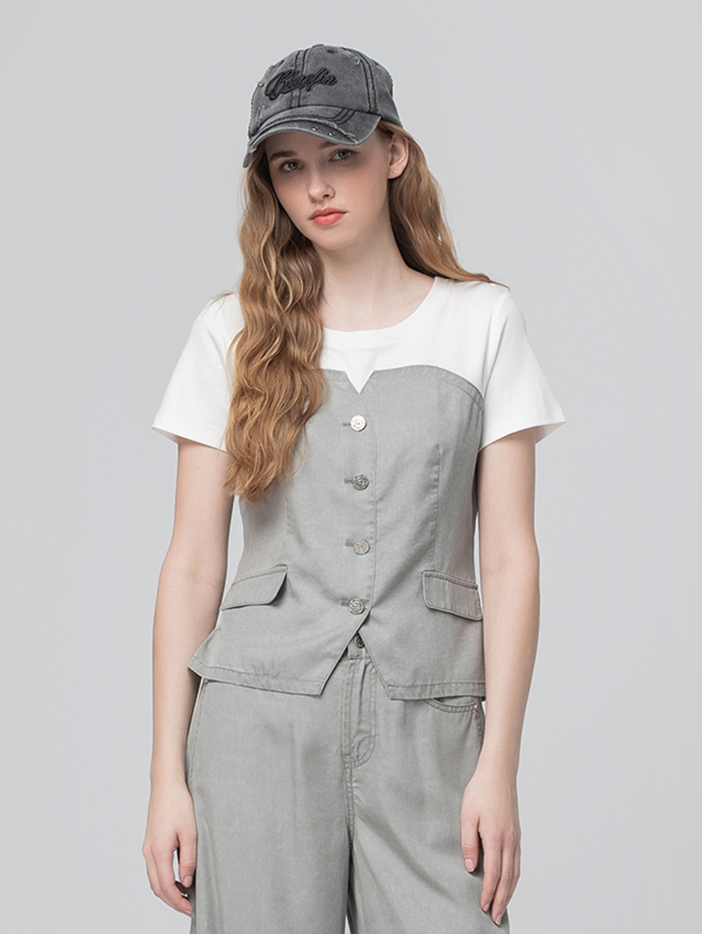 abito水洗造型馬甲式拼接上衣