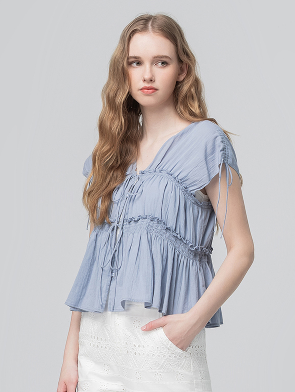 abito甜美荷葉邊抽繩上衣