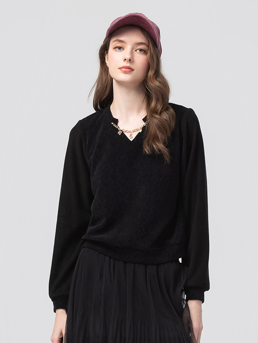 *領口可拆式金屬拉練細節 *V領領口修飾線條 *特殊愛心型布料 *布料柔軟親膚又保暖