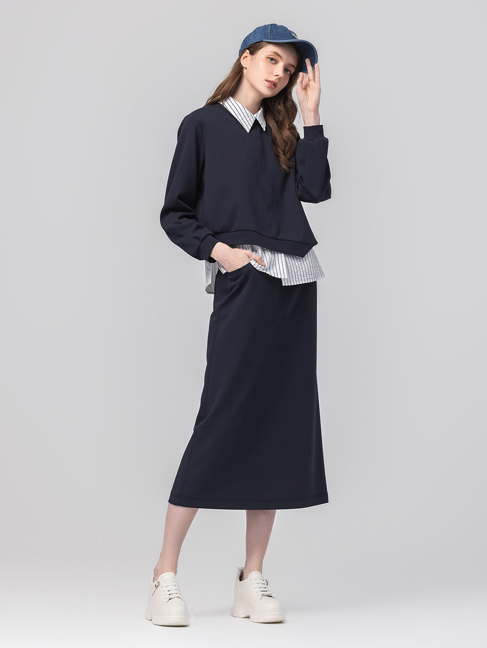 *上身下襬不對稱造型設計 *內搭襯衫可自由穿脫搭配 *下身鬆緊腰頭,穿脫方便 *棉質面料柔軟舒適