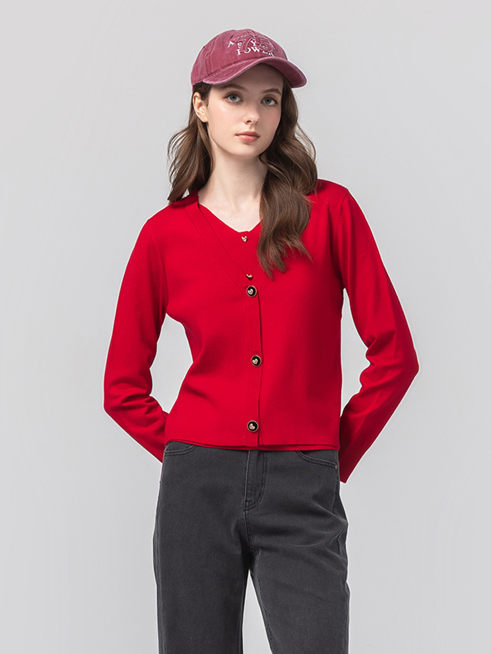 *金屬甜美愛心釦 *假兩件多層次感 *面料柔軟親膚 *日常百搭款