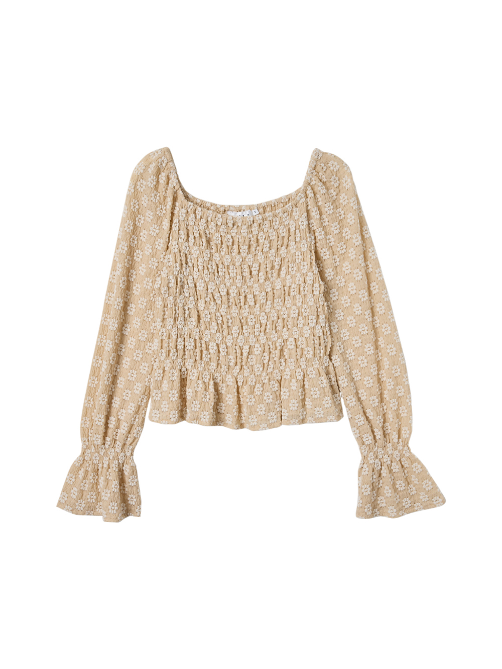 將泡泡布底運用在有拋份的版型上,衣身鬆緊帶,一穿上立即變身時尚可愛的日系女孩。