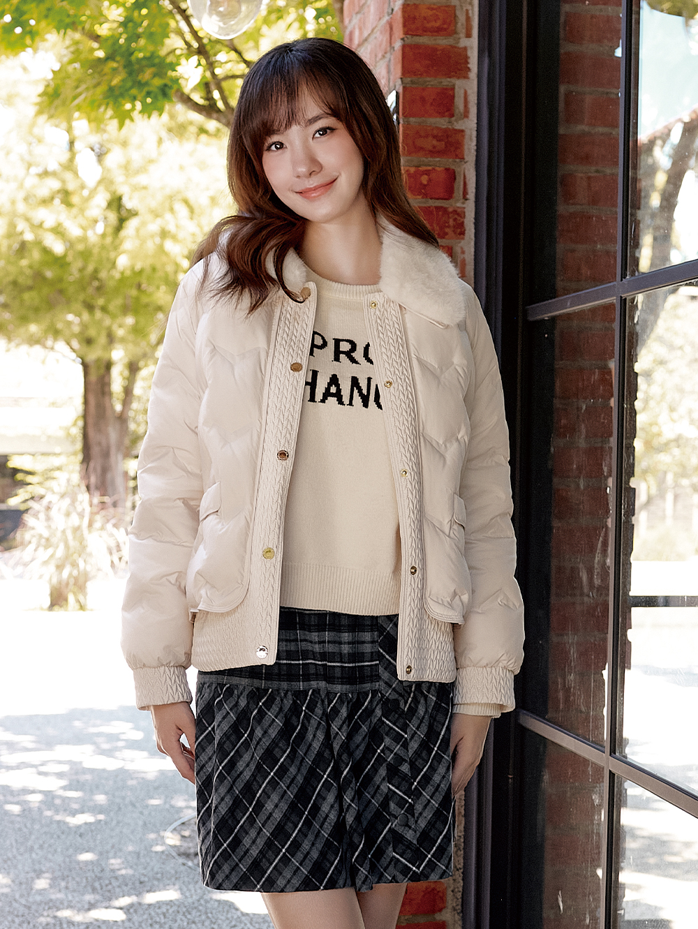 DITA絎縫襯衫領羽絨外套