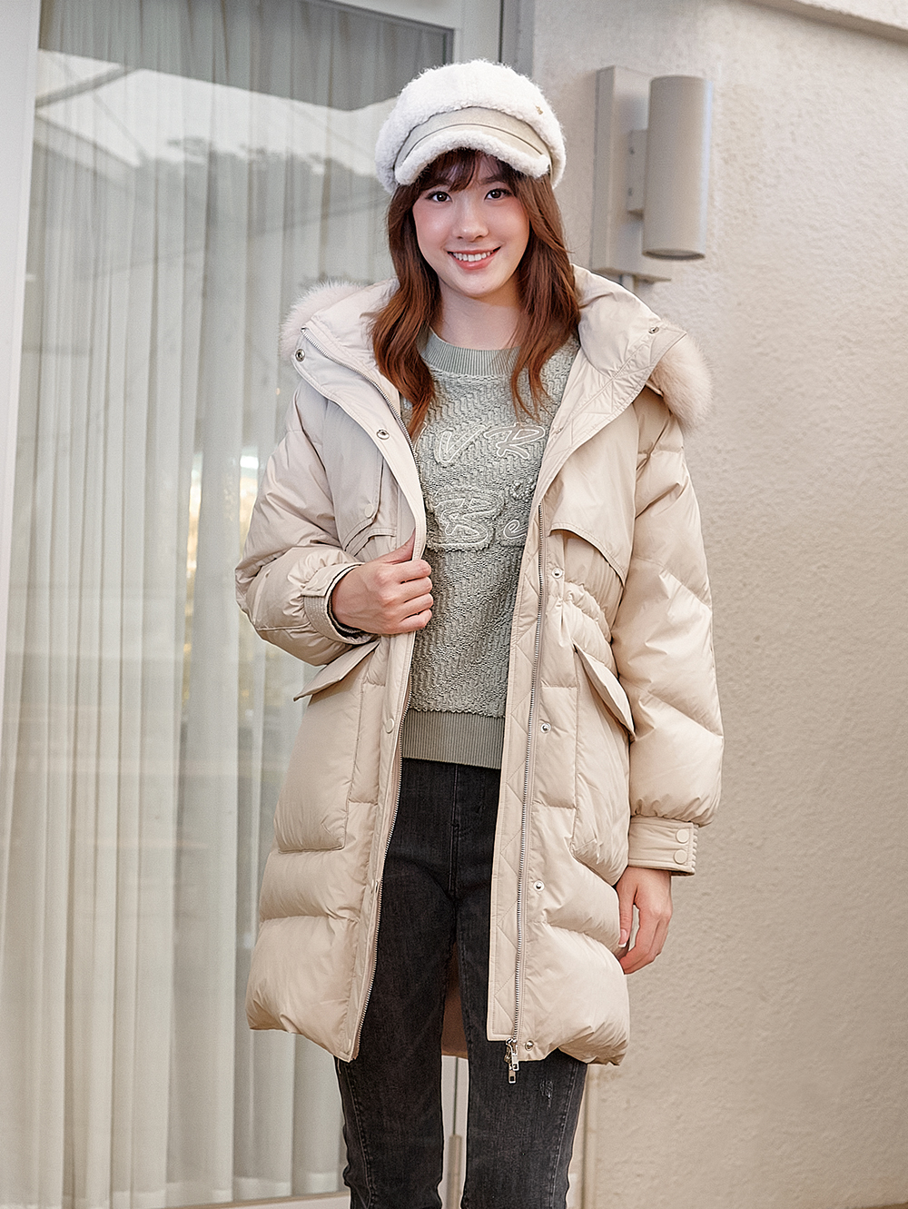 DITA保暖長版收腰羽絨外套