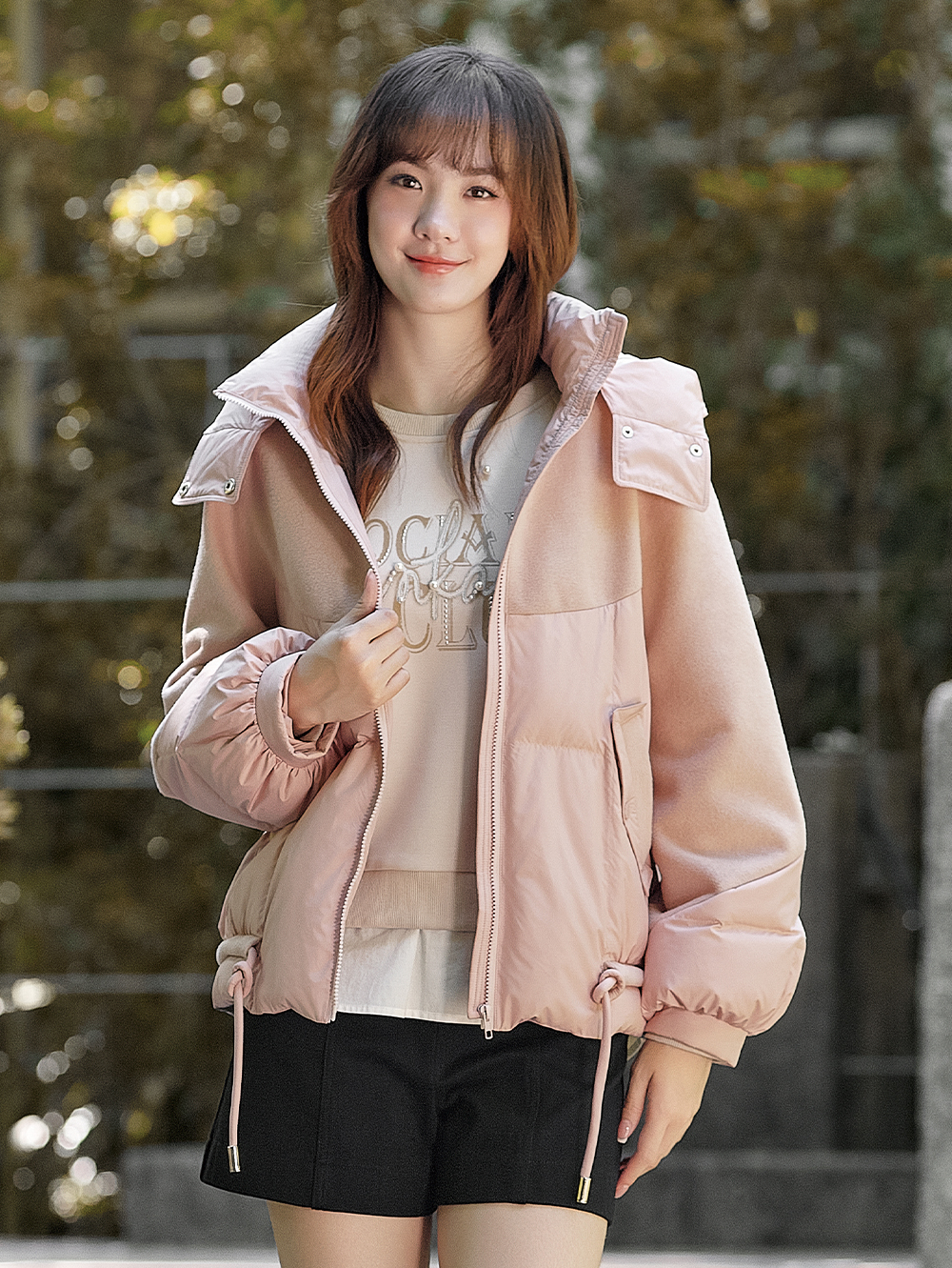 DITA份量感毛料拼接羽絨外套