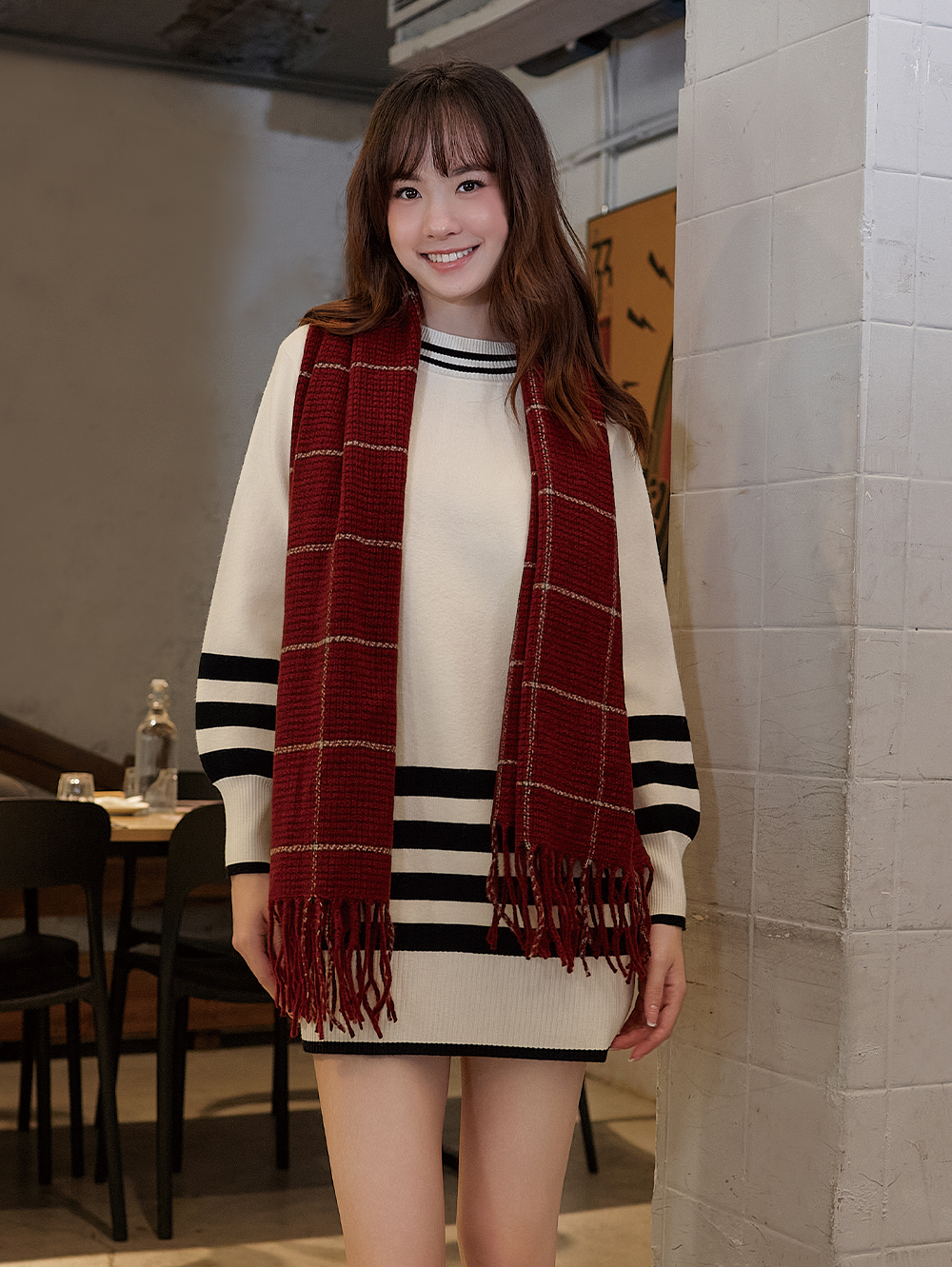 DITA韓系條紋短版針織洋裝