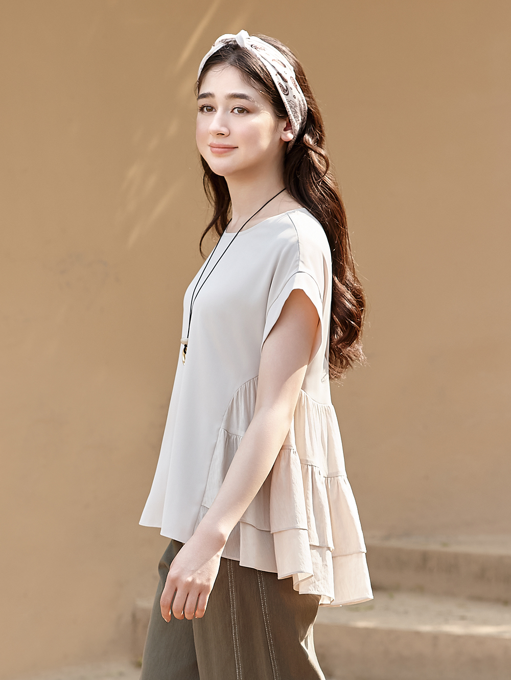 基礎百搭身型 層次感荷葉剪接設計 舒適柔軟布料