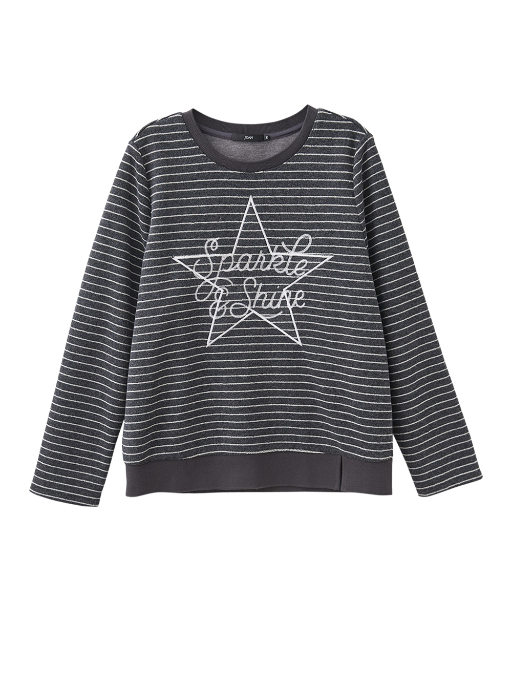 帶有溫暖手感的毛巾布素材, 柔軟輕暖且具彈性, 星星與字樣電繡讓整體多了一點俏皮亮點, 日常休閒穿搭隨性又自在。